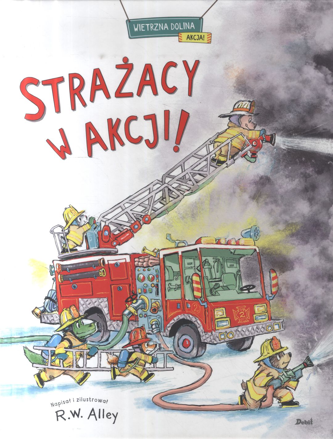 Zabawny, edukacyjny picturebook z wartką akcją i pełnymi szczegółów ilustracjami. Pali się! Gdzie ten pożar? Strażacy z Wietrznej Doliny pędzą na ratunek! Wyje syrena alarmowa! Ktoś potrzebuje pomocy! Pewnie gdzieś się pali! Wskocz razem ze strażakami do wozów strażackich i śpieszcie na ratunek. Poznaj specjalne ubrania strażaków i sprzęt pożarniczy. Zobacz, jak się rozkłada drabinę i jak się rozwija węże gaśnicze. Razem z ekipą strażacką przebij się od góry przez dach, żeby ugasić ogień. Strażacy z Wietrznej Doliny to prawdziwi bohaterowie! A po skończonej akcji… dowiedz się, co jeszcze dzielni strażacy robią podczas pracy!